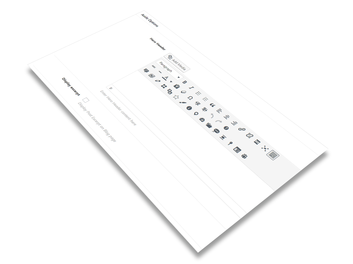 The Aside Post Format is the only post format that allows you to build up from scratch post layouts and designs according to your unlimited creativity — all of these due to Hero Header Area which displays on full width size and allows you to add any type of content. On Archive Pages, its layout is similar to Standard Post Format.