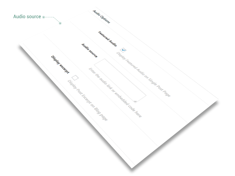 Regarding the layout, it is very similar to Standard Post Format, but instead of Featured Image, you will have a Featured Audio.