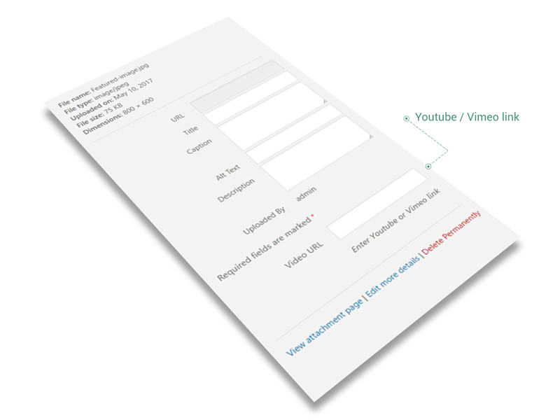 One important feature of the Gallery Post Format is that you can add — beyond the images — Youtube and Vimeo videos, by entering their links in Media Uploader Popup.