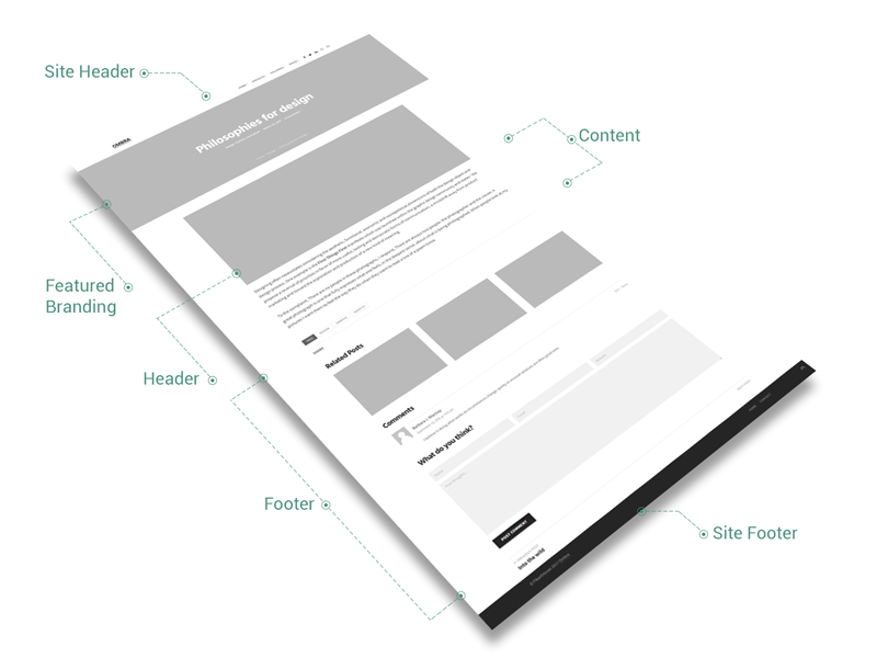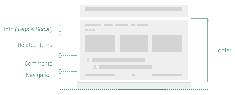 The Footer is the element which includes the Single common elements, like Info (Tags & Social Share), Comments and Navigation. There is also one more field — Related Items  specific just for Post and Project.