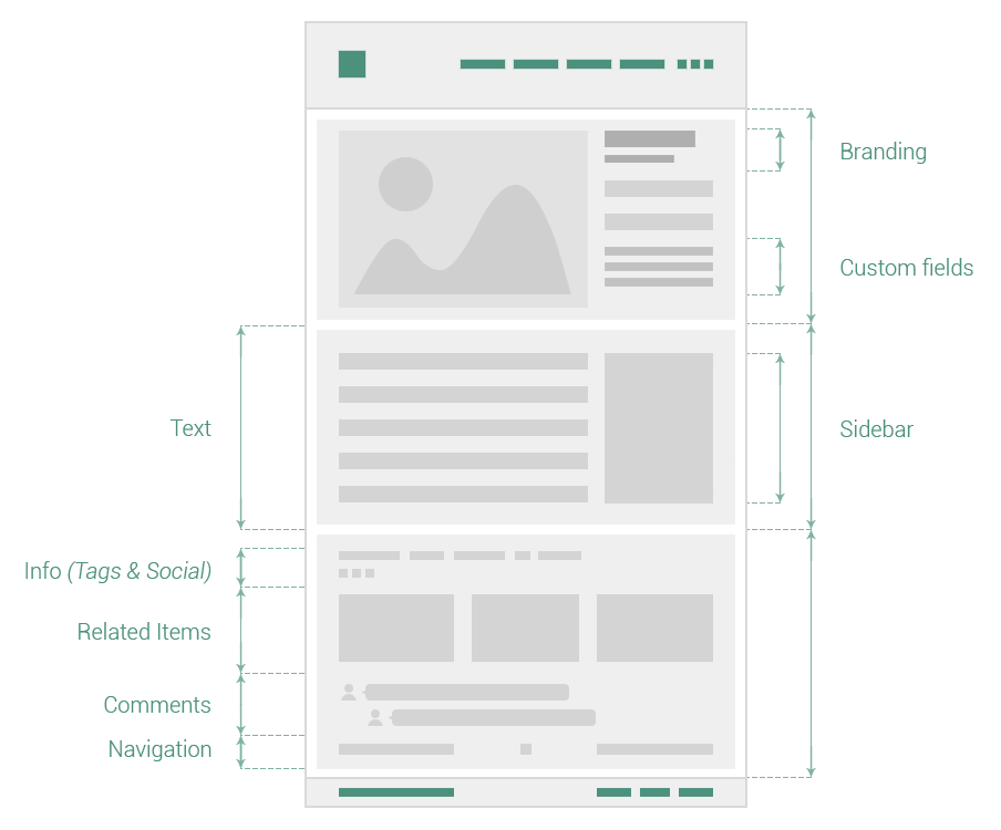 • Sub elements (Branding, Text, Info, Related Items, Comments, Navigation, Custom fields)