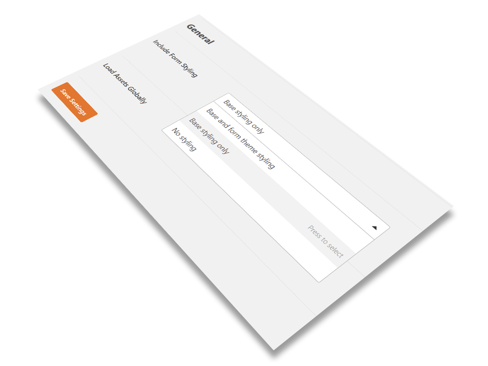 After activating the plugin, you should do one more thing in order to make your forms look the same way as OMBRA design. Go to WPForms → Settings, find General → Include Form Styling and choose Base styling only.