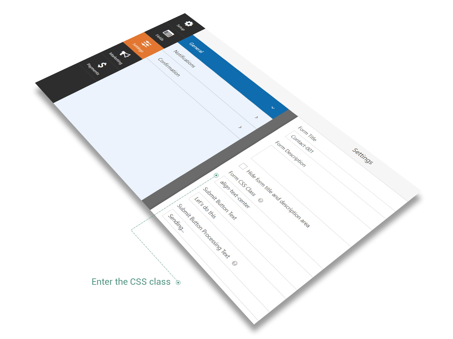 One more thing, you could align the text fields of your contact form and even Submit button by adding a CSS class in Form CSS Class field. In order to do so, enter your form and navigate to Settings → General → Form CSS Class and enter there one of the following classes: align-text-left, align-text-center or align-text-right, depending on your preferences of alignment.